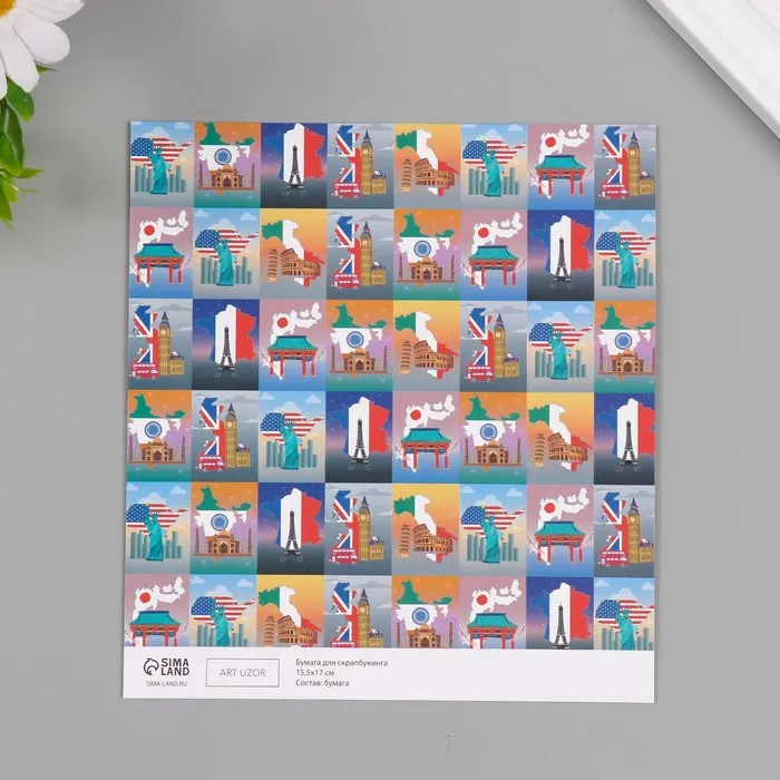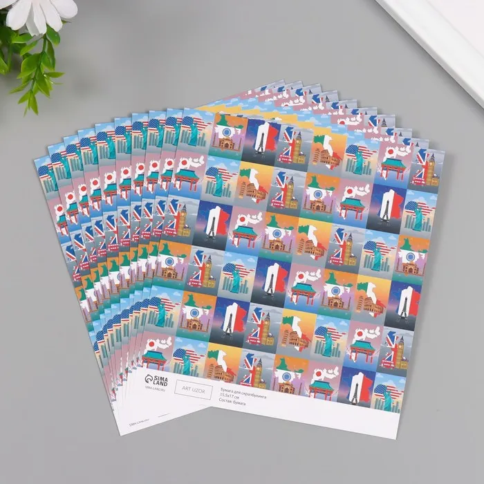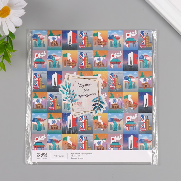 Бумага для скрапбукинга двусторонняя «Путешествия», плотность 180 г, набор 10 шт., 15.5×17 см — Характеристики