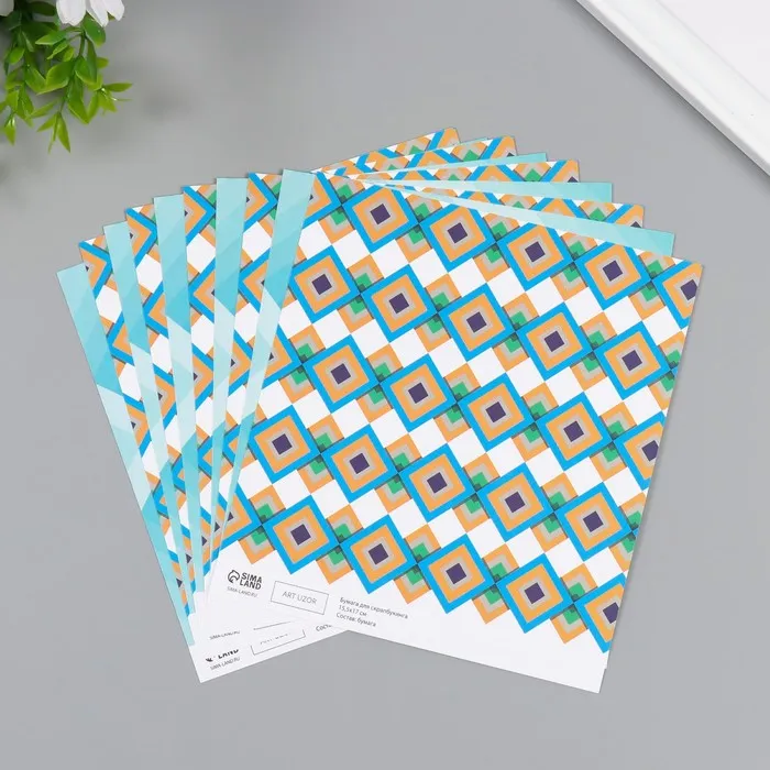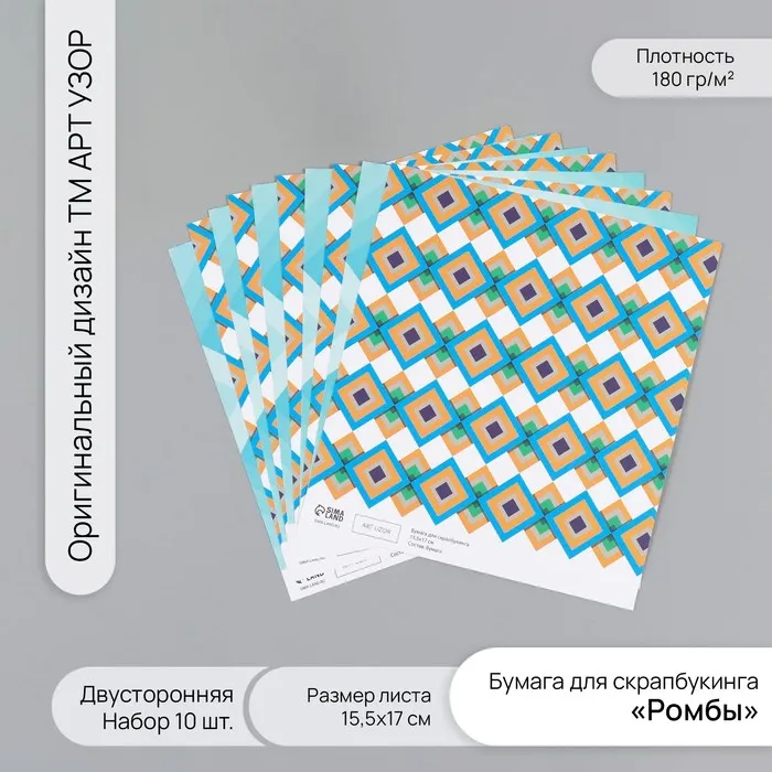 Бумага для скрапбукинга двусторонняя «Ромбы», плотность 180 г, набор 10 шт., 15.5×17 см — Характеристики
