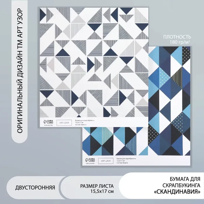 Бумага для скрапбукинга двусторонняя «Скандинавия», плотность 180 г, 15.5×17 см — Характеристики
