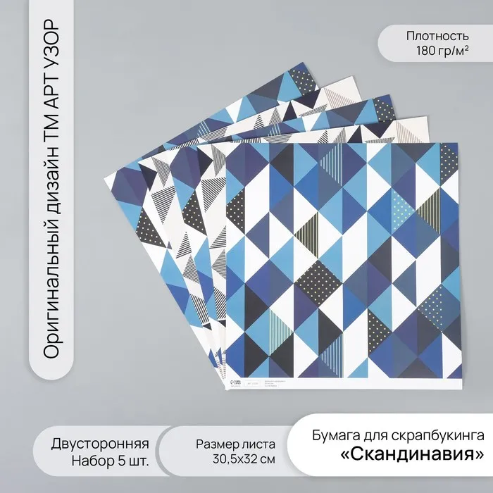 Бумага для скрапбукинга двусторонняя «Скандинавия», плотность 180 г, набор 5 шт., 30.5×32 см — Характеристики