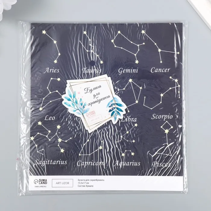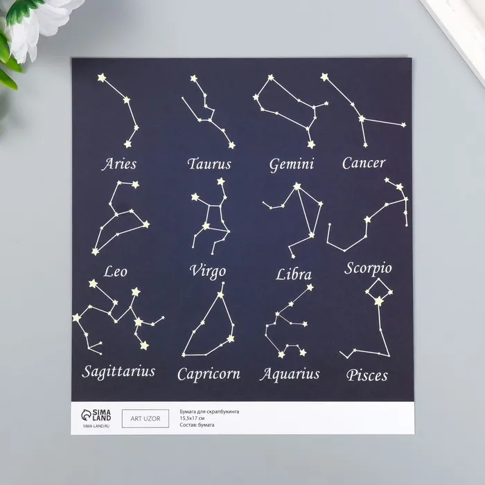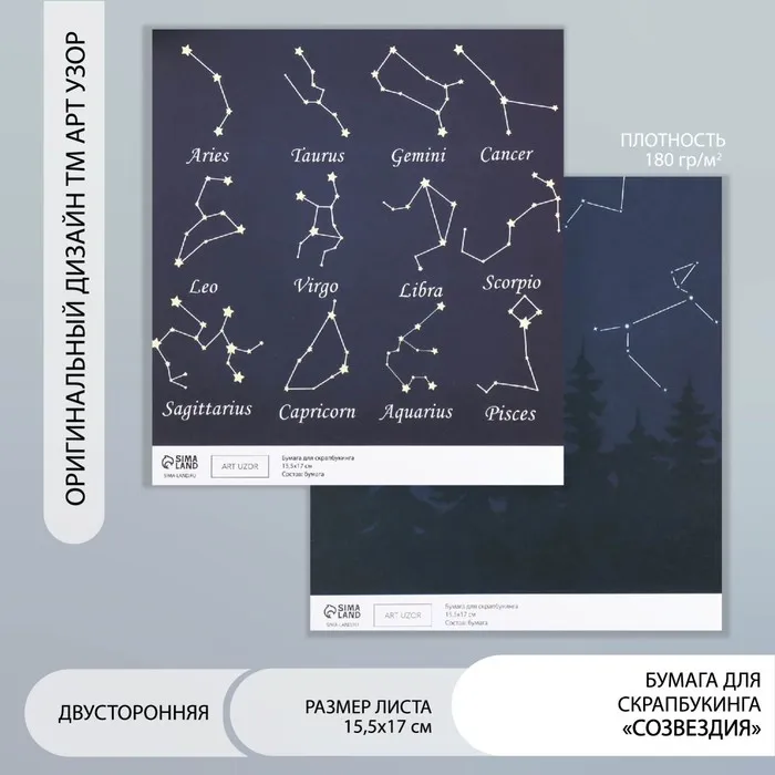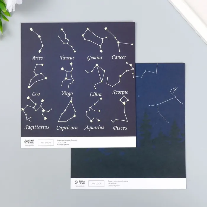 Бумага для скрапбукинга двусторонняя «Созвездия», плотность 180 г, 15.5×17 см — Характеристики