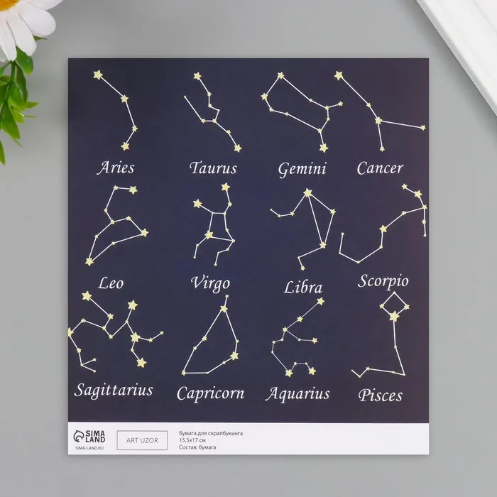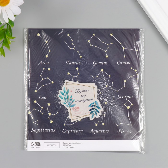 Бумага для скрапбукинга двусторонняя «Созвездия», плотность 180 г, набор 10 шт., 15.5×17 см — Характеристики