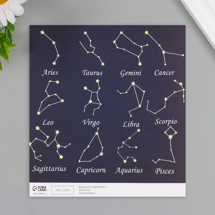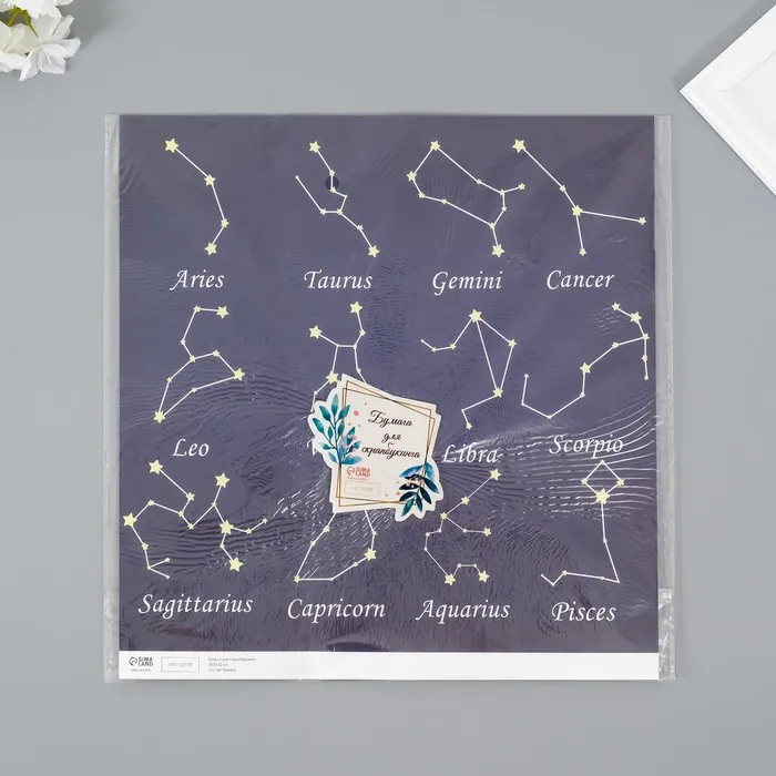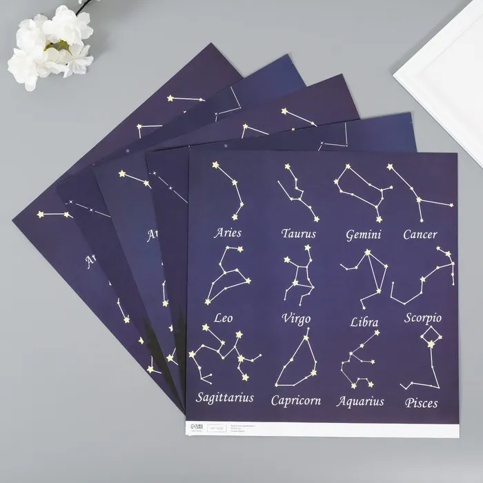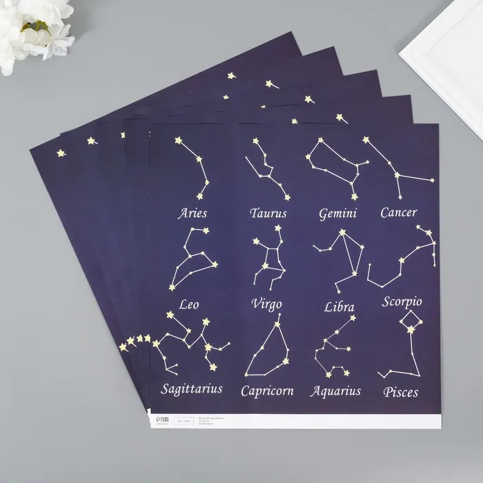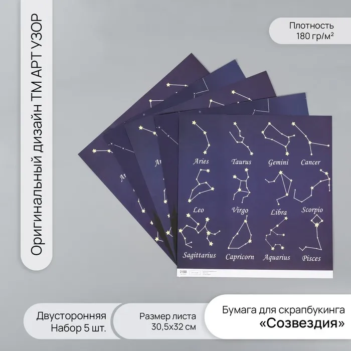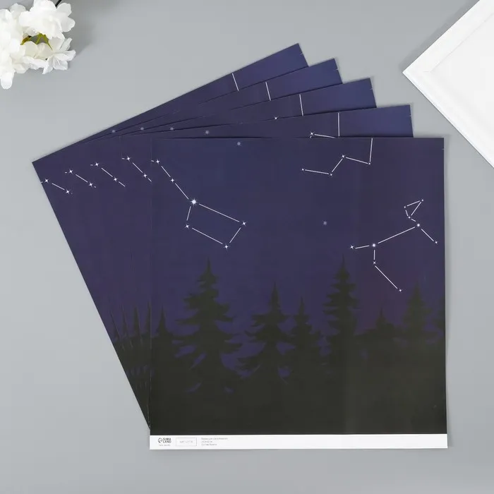 Бумага для скрапбукинга двусторонняя «Созвездия», плотность 180 г, набор 5 шт., 30.5×32 см — Характеристики