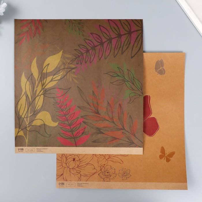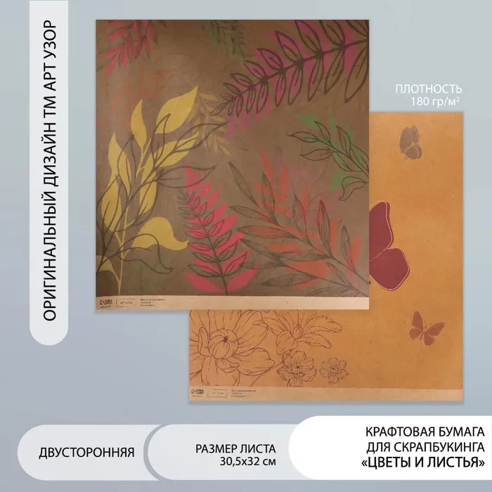 Бумага для скрапбукинга двусторонняя «Цветы и листья крафт», плотность 180 г, 30.5×32 см — Характеристики