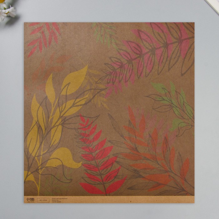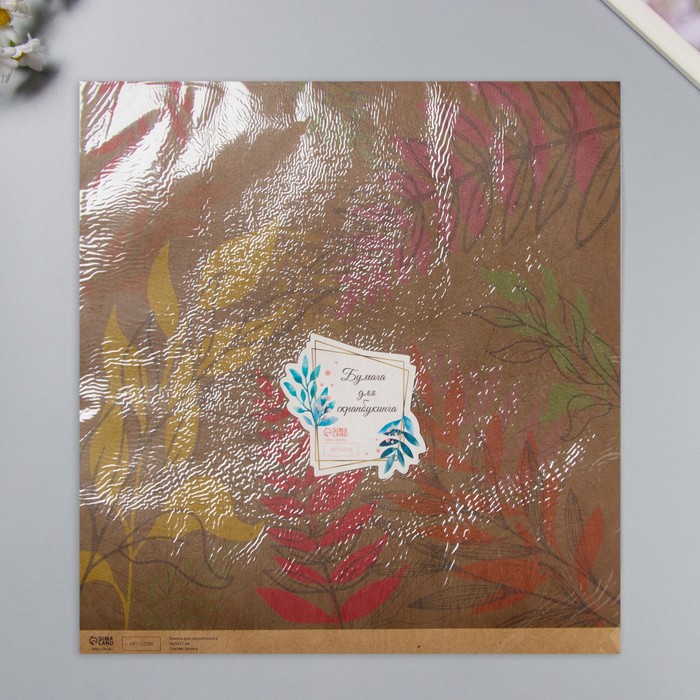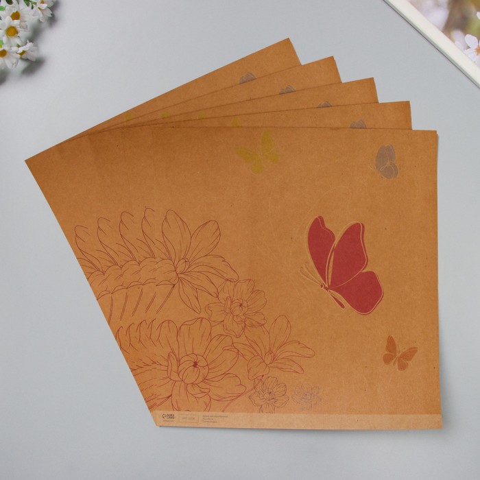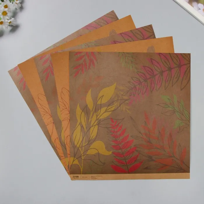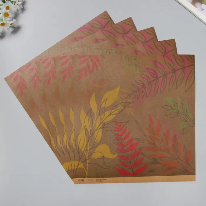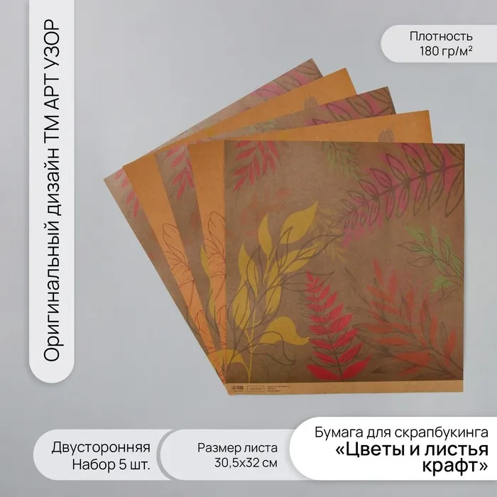 Бумага для скрапбукинга двусторонняя «Цветы и листья крафт», плотность 180 г, набор 5 шт., 30.5×32 см — Характеристики