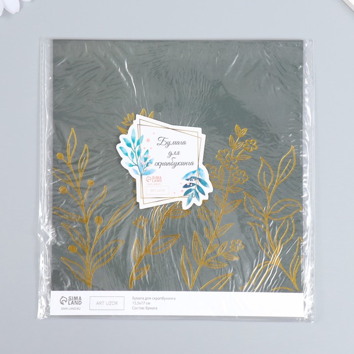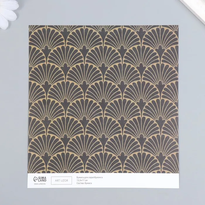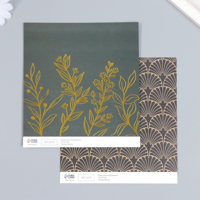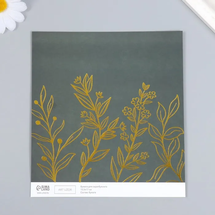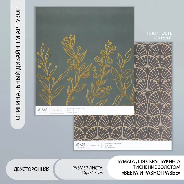 Бумага для скрапбукинга двусторонняя «Веера и разнотравье золото», плотность 180 г, 15.5×17 см — Характеристики