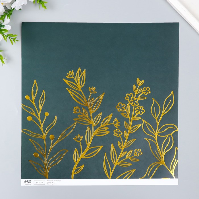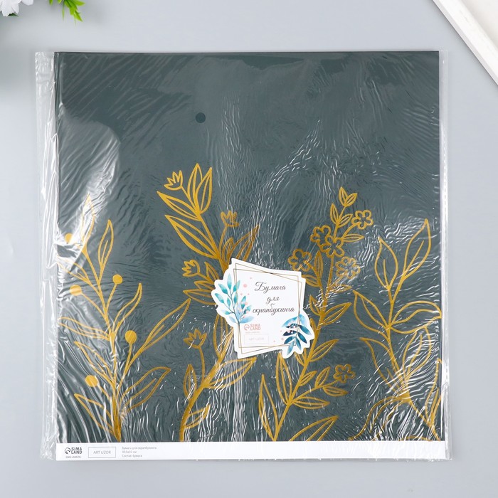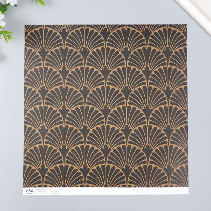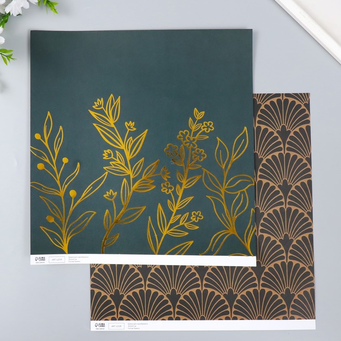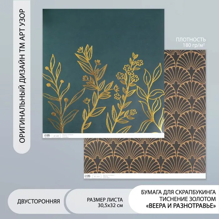 Бумага для скрапбукинга двусторонняя «Веера и разнотравье золото», плотность 180 г, 30.5×32 см — Характеристики