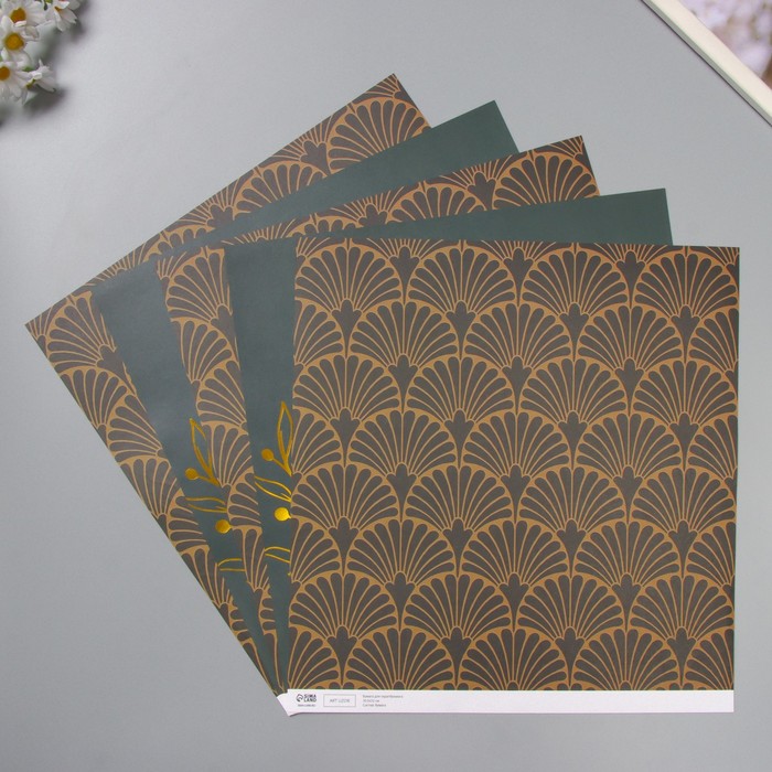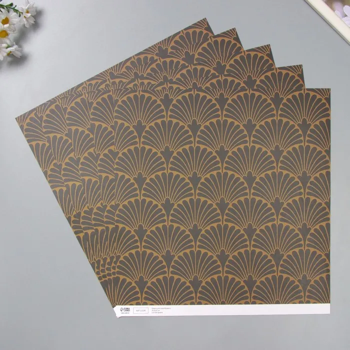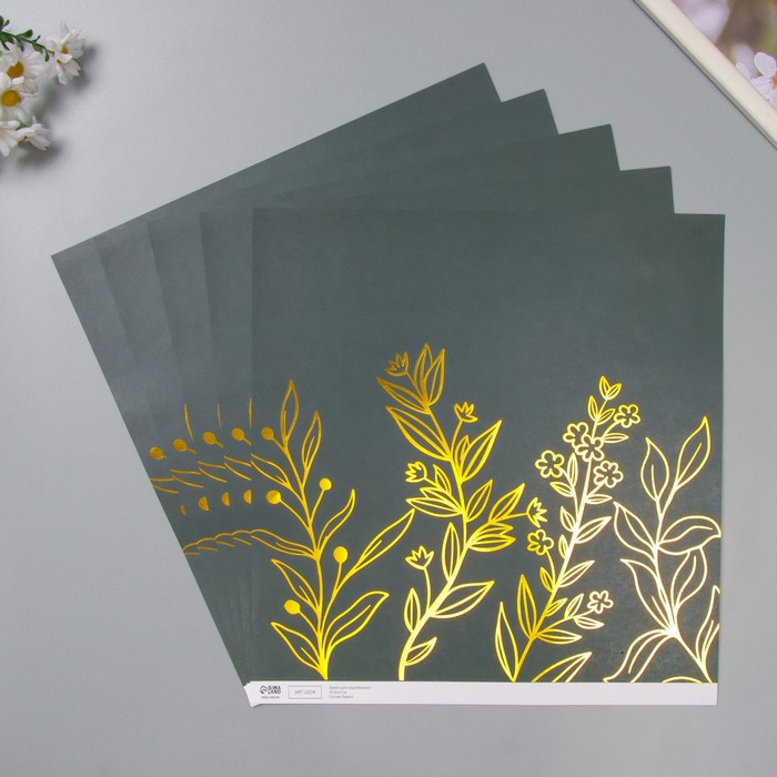 Бумага для скрапбукинга двусторонняя «Веера. Разнотравье золото», 180 г, набор 5 шт., 30.5×32 см — Характеристики
