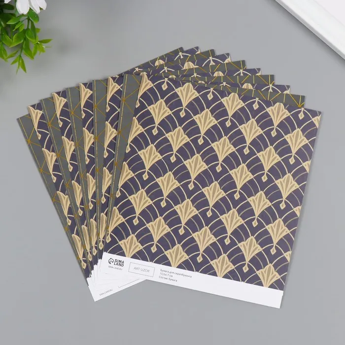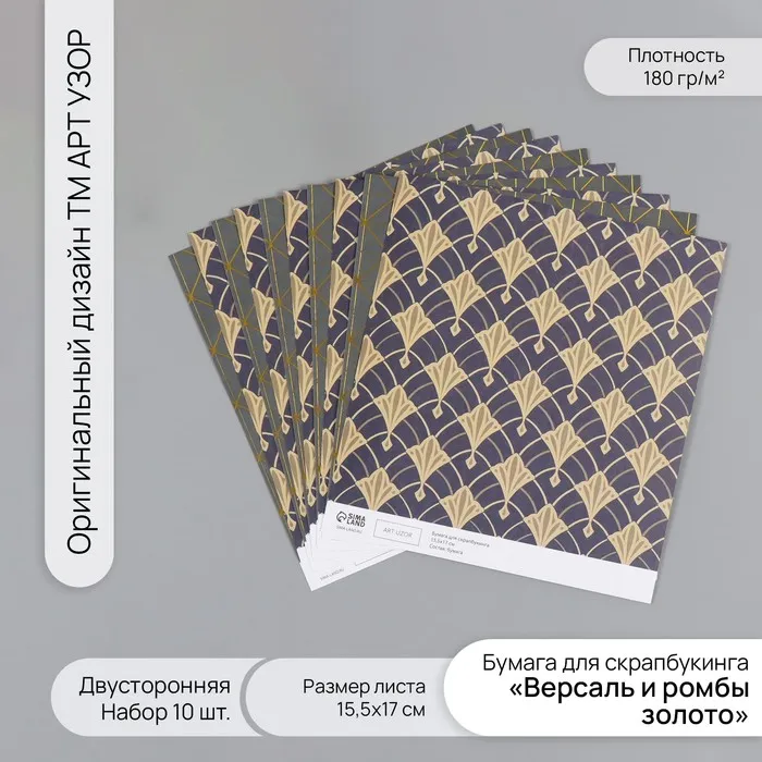 Бумага для скрапбукинга двусторонняя «Версаль и ромбы золото», плотность 180 г, набор 10 шт., 15.5×17 см — Характеристики