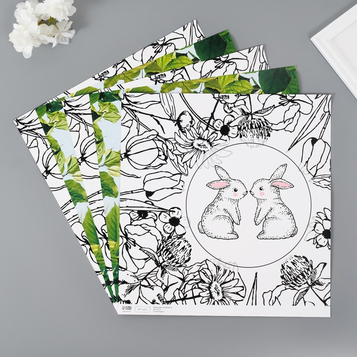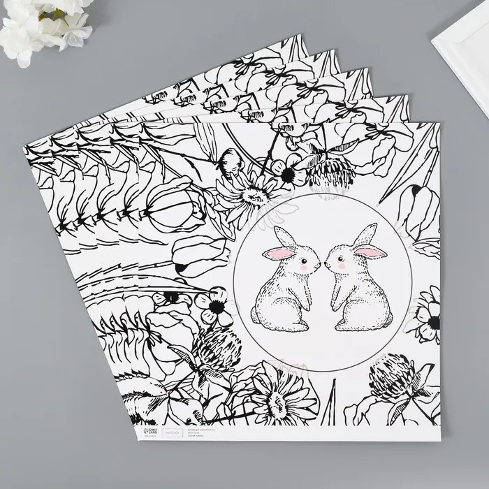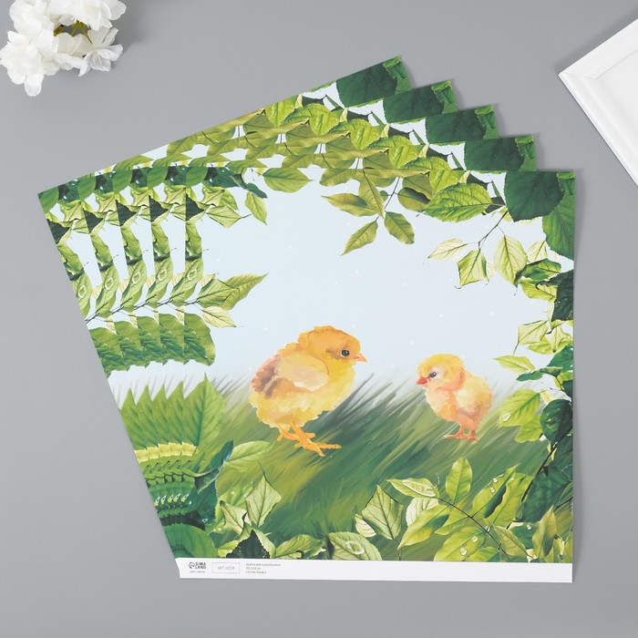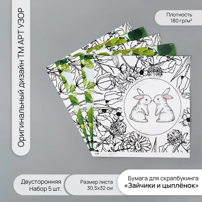 Бумага для скрапбукинга двусторонняя «Зайчики и цыплёнок», плотность 180 г, набор 5 шт., 30.5×32 см — Характеристики
