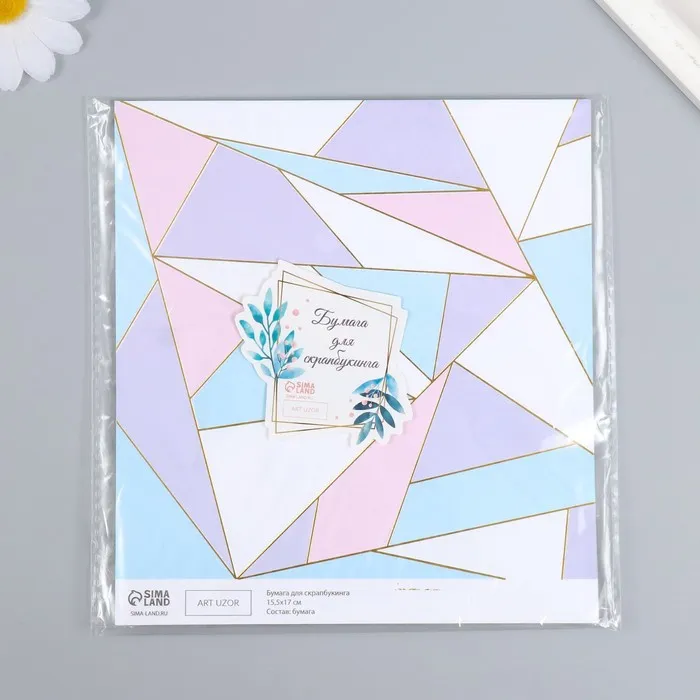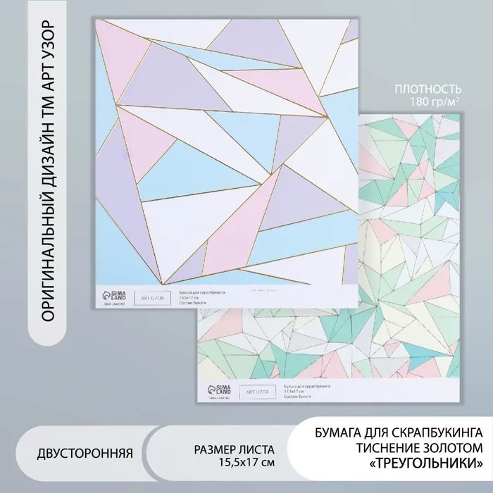 Бумага для скрапбукинга двусторонняя золото «Треугольники», плотность 180 г, 15.5×17 см — Характеристики