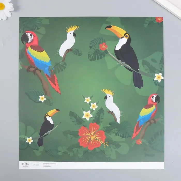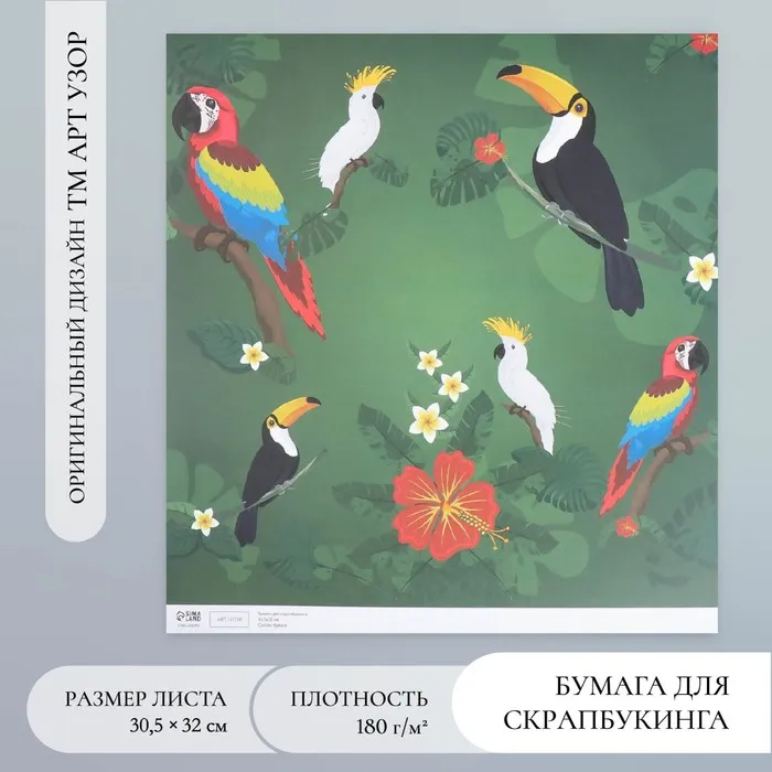 Бумага для скрапбукинга «Экзотические птицы», плотность 180 г, 30.5×32 см — Характеристики