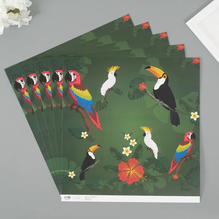Бумага для скрапбукинга «Экзотические птицы», плотность 180 г, набор 5 шт., 30.5×32 см — Характеристики