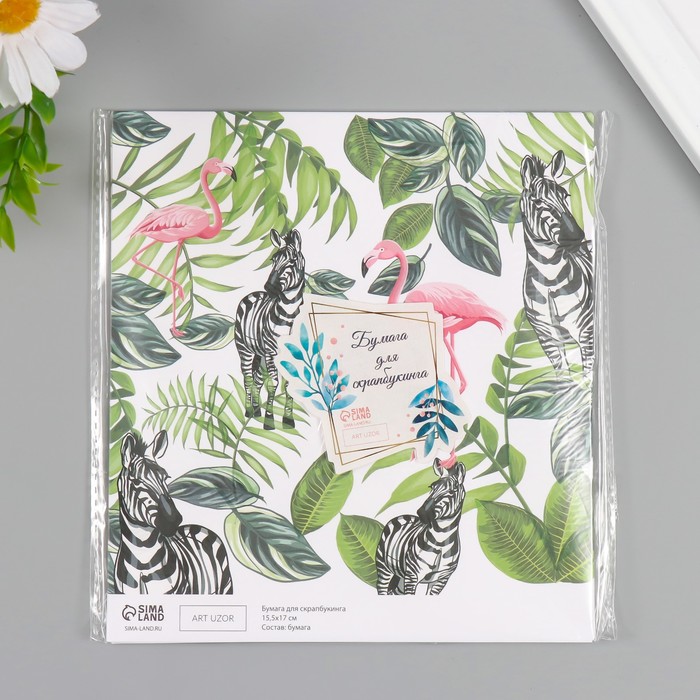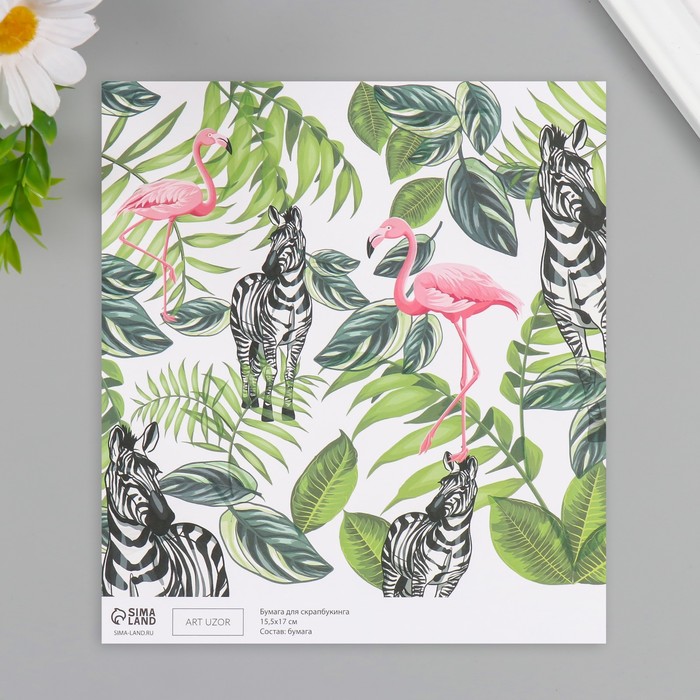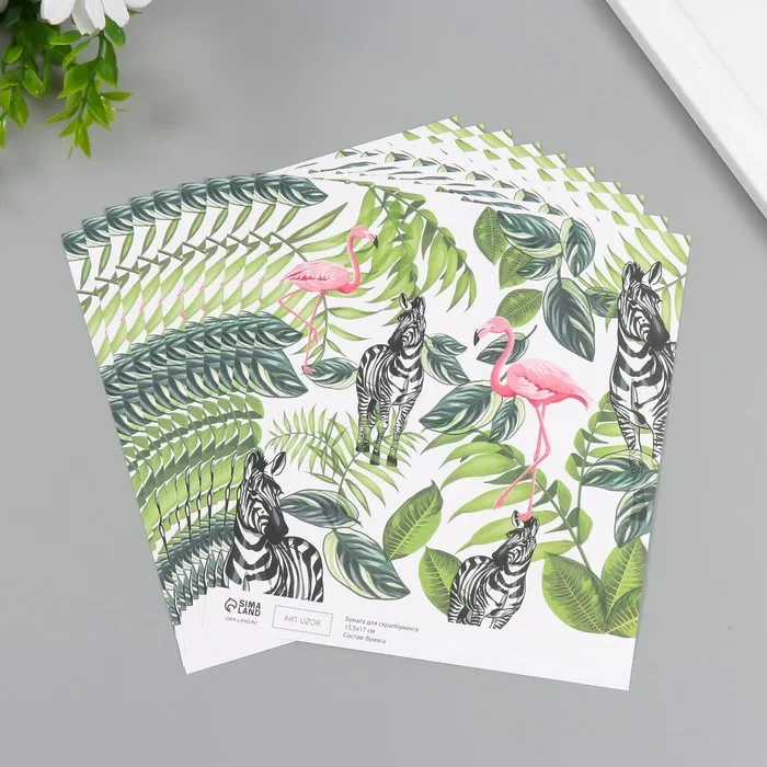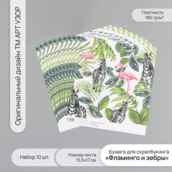 Бумага для скрапбукинга «Фламинго и зебры», плотность 180 г, набор 10 шт., 15.5×17 см — Характеристики