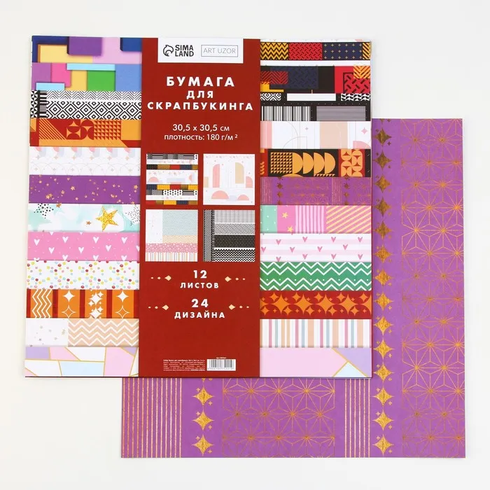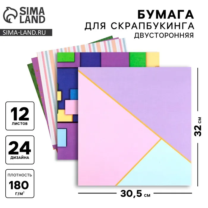 Бумага для скрапбукинга «Яркая геометрия», 12 листов, 30.5×30.5 см, 180 г/м² — Характеристики