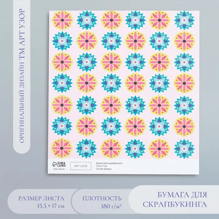 Бумага для скрапбукинга «Калейдоскоп», плотность 180 г, 15.5×17 см — Характеристики
