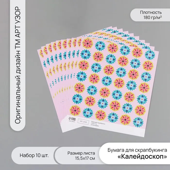 Бумага для скрапбукинга «Калейдоскоп», плотность 180 г, набор 10 шт., 15.5×17 см — Характеристики