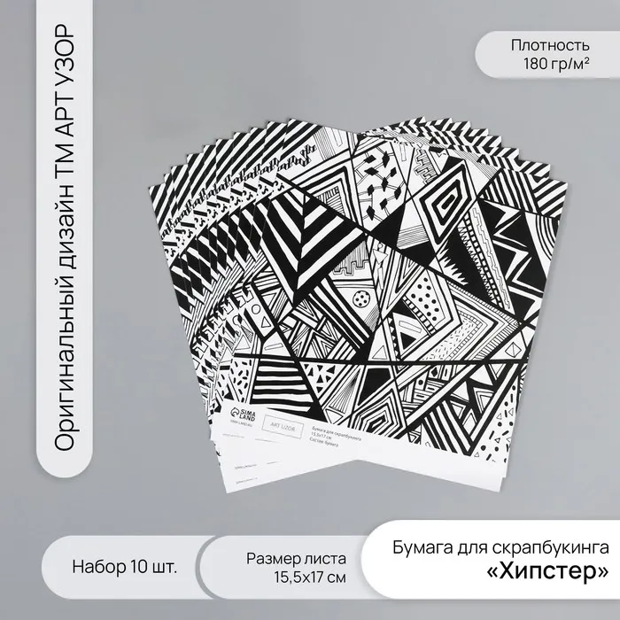 Бумага для скрапбукинга «Хипстер», плотность 180 г, набор 10 шт., 15.5×17 см — Характеристики