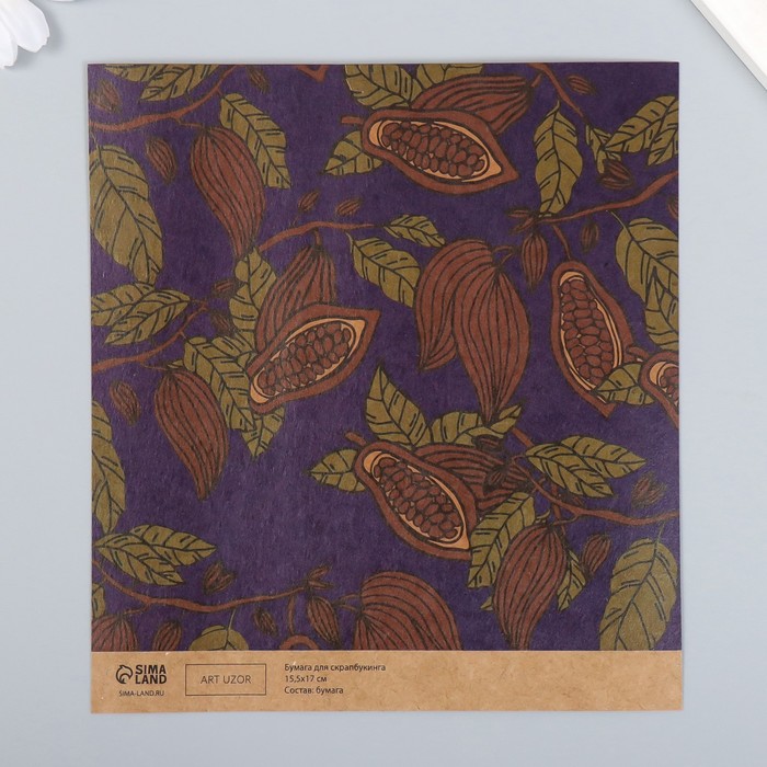 Бумага для скрапбукинга крафт «Какао на синем», плотность 180 г, 15.5×17 см — Характеристики