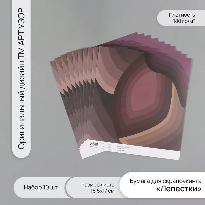 Бумага для скрапбукинга «Лепестки», плотность 180 г, набор 10 шт., 15.5×17 см — Характеристики