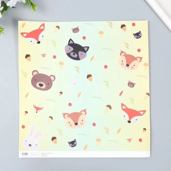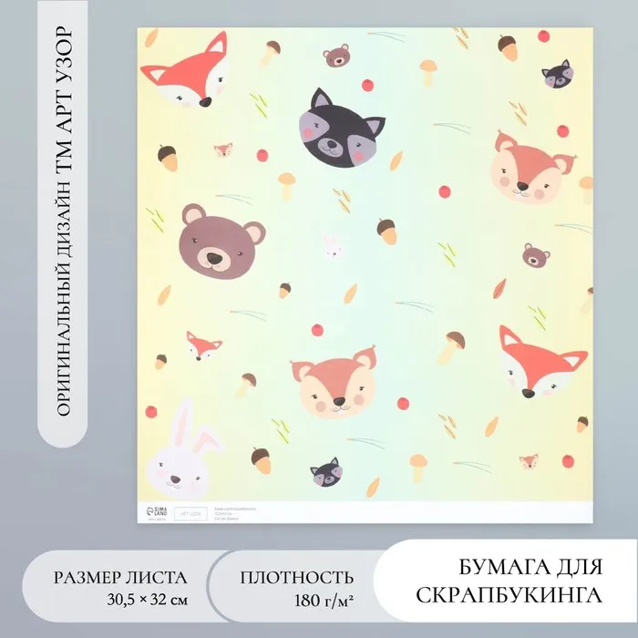 Бумага для скрапбукинга «Лесные звери», плотность 180 г, 30.5×32 см — Характеристики