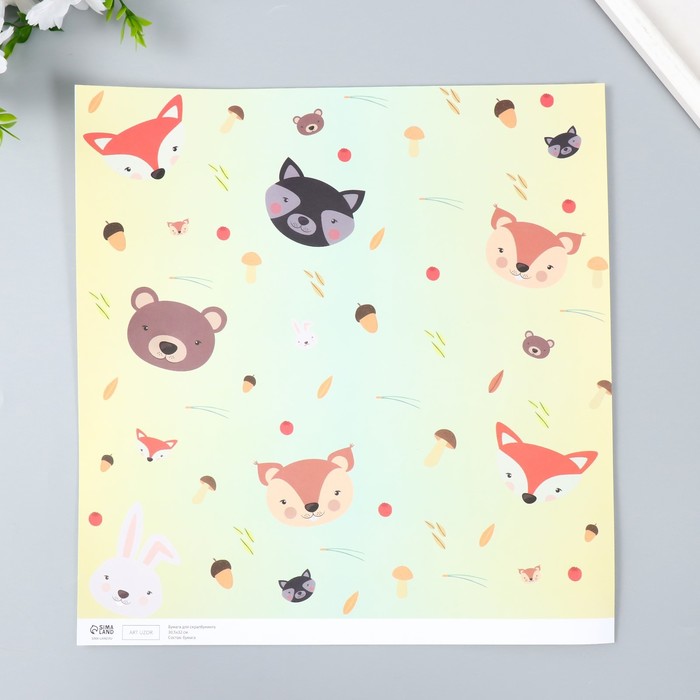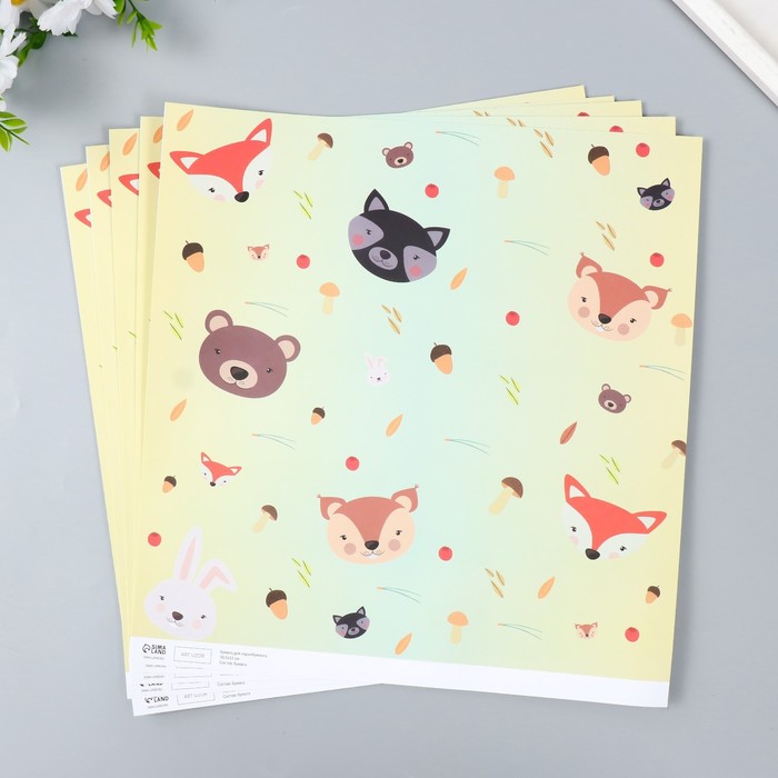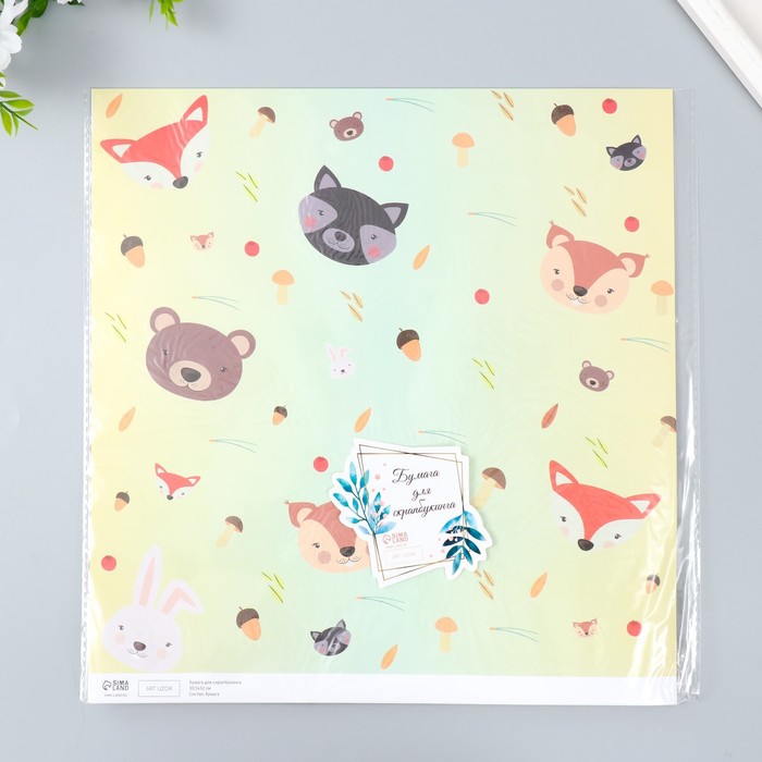 Бумага для скрапбукинга «Лесные звери», плотность 180 г, 30.5×32 см