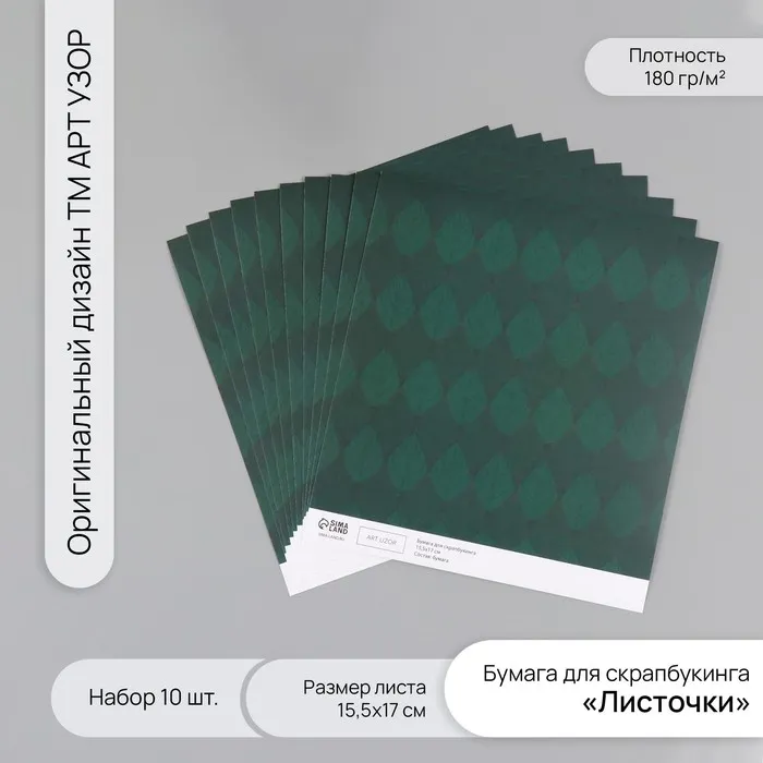 Бумага для скрапбукинга «Листочки», плотность 180 г, набор 10 шт., 15.5×17 см — Характеристики