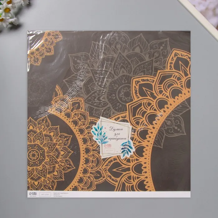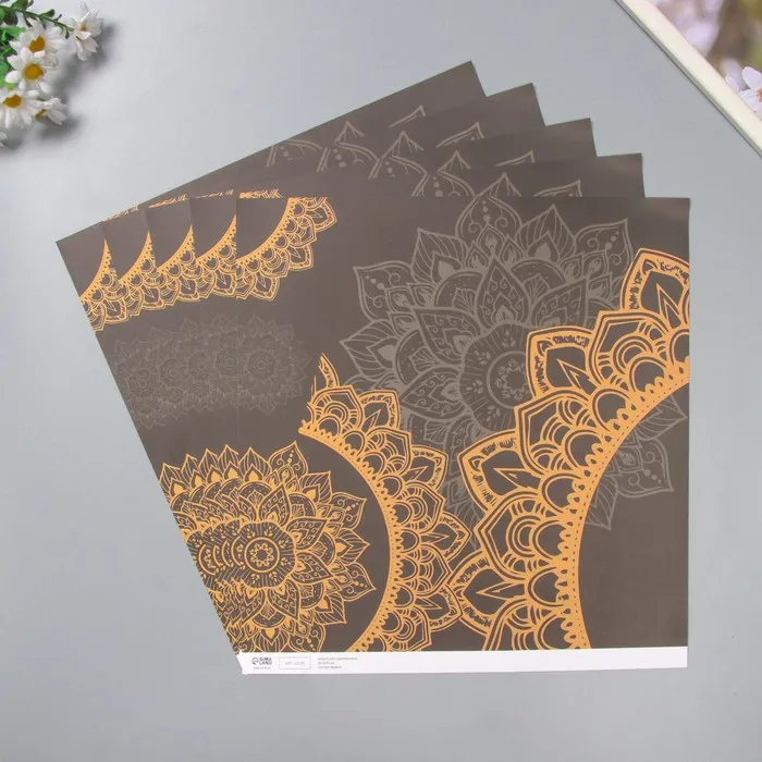 Бумага для скрапбукинга «Мандала на чёрном», плотность 180 г, набор 5 шт., 30.5×32 см — Характеристики