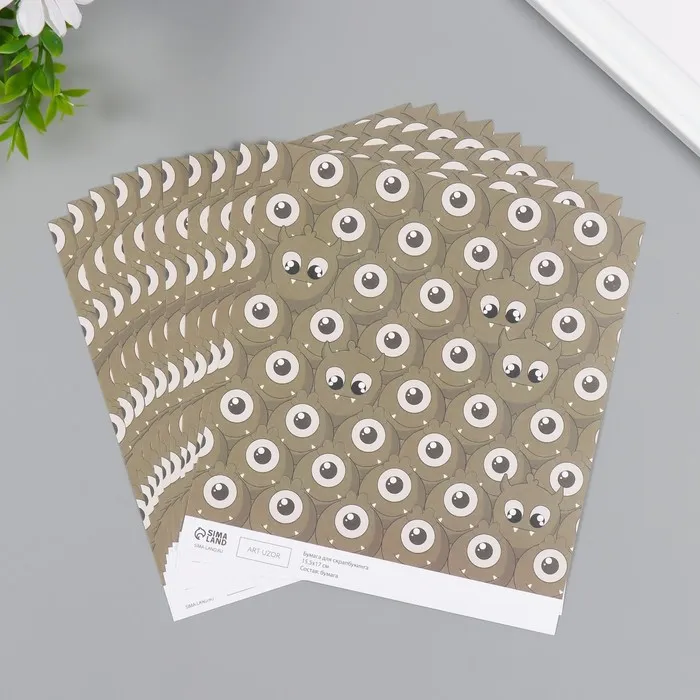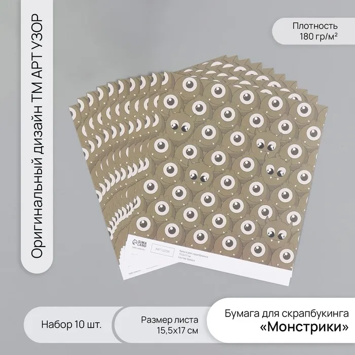 Бумага для скрапбукинга «Монстрики», плотность 180 г, набор 10 шт., 15.5×17 см — Характеристики
