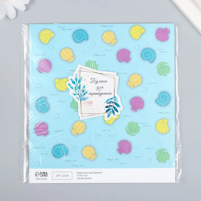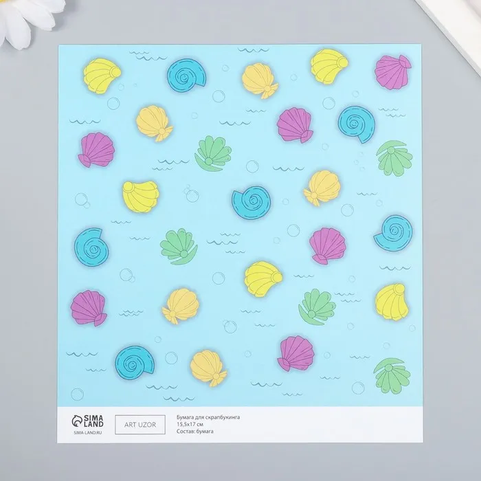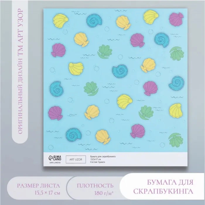 Бумага для скрапбукинга «Морские ракушки», плотность 180 г, 15.5×17 см — Характеристики