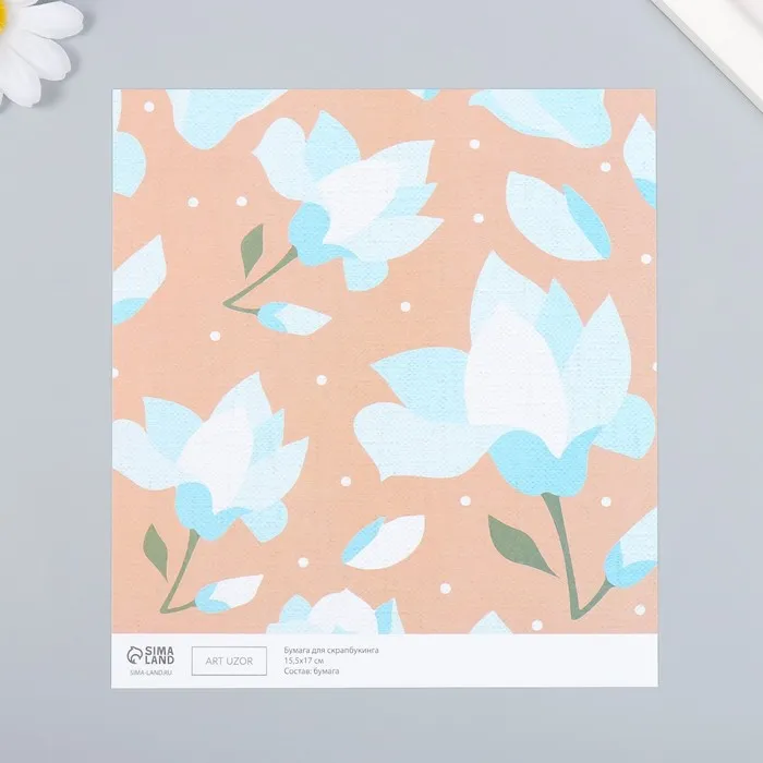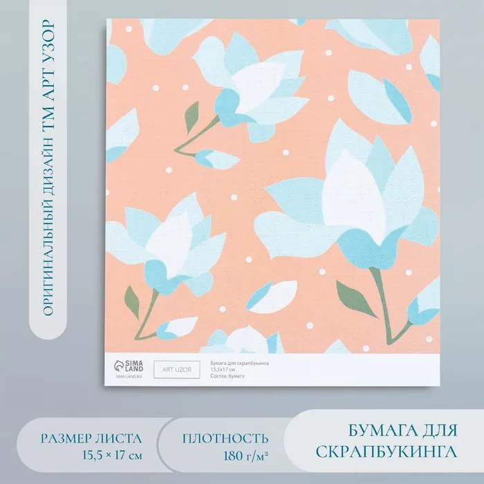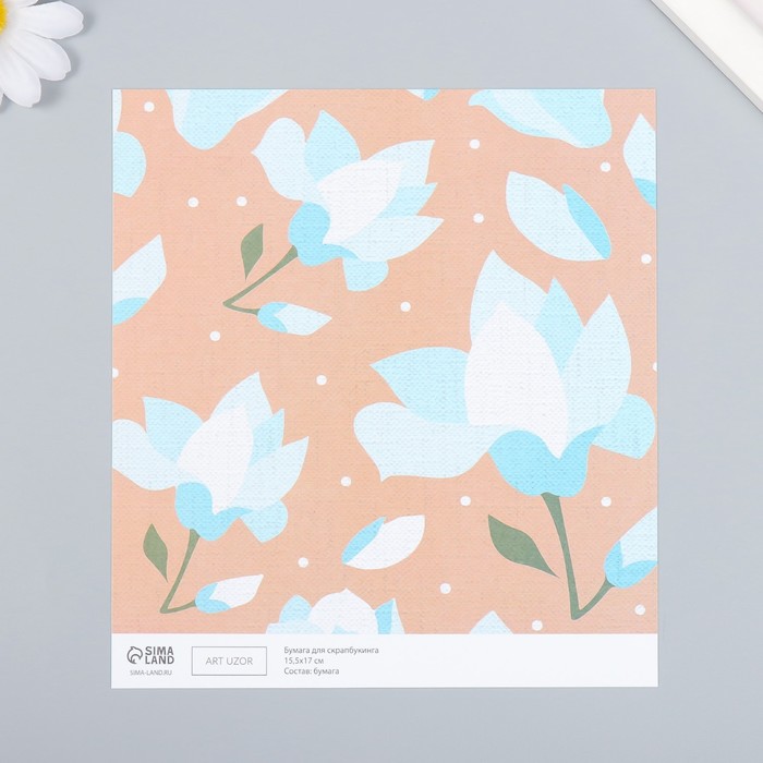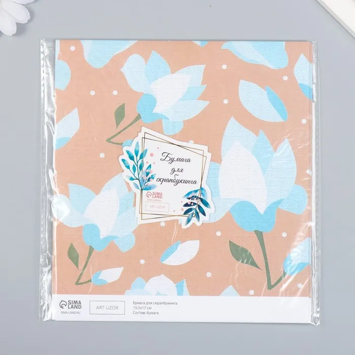 Бумага для скрапбукинга «Нежно-голубые цветы», плотность 180 г, 15.5×17 см — Характеристики