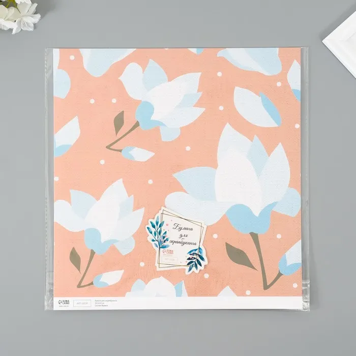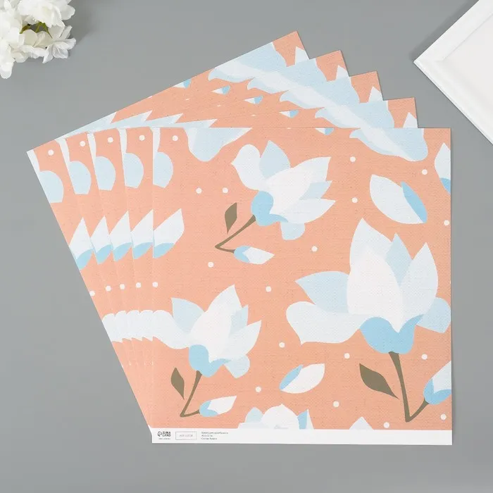 Бумага для скрапбукинга «Нежно-голубые цветы», плотность 180 г, набор 5 шт., 30.5×32 см — Характеристики