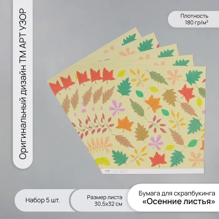 Бумага для скрапбукинга «Осенние листья», плотность 180 г, набор 5 шт., 30.5×32 см — Характеристики