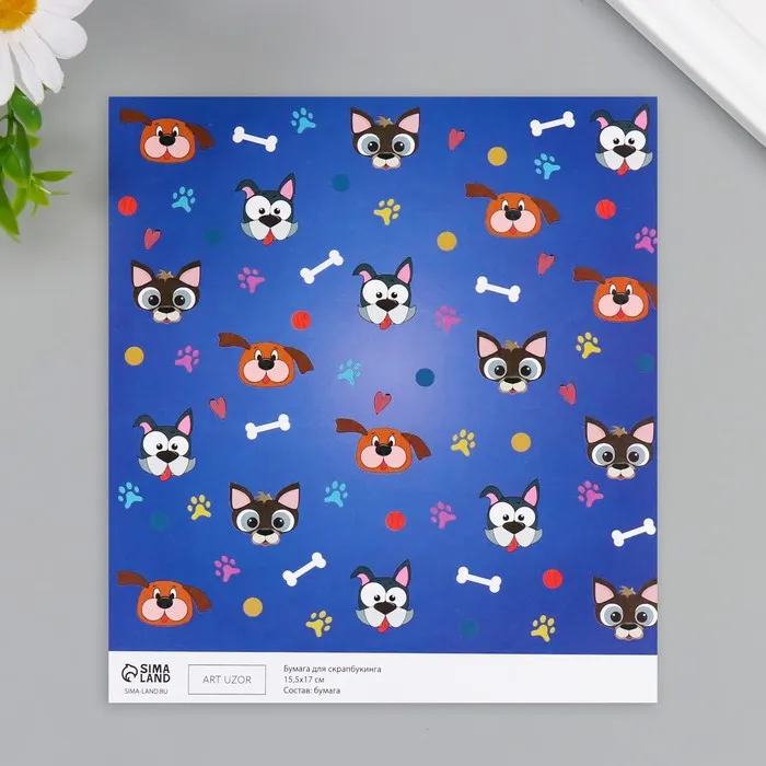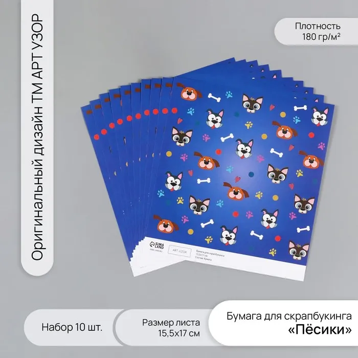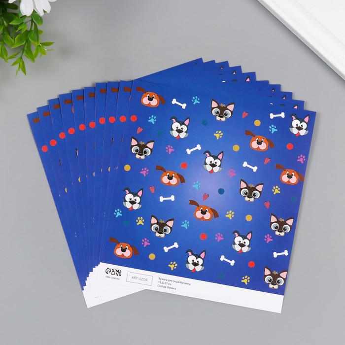 Бумага для скрапбукинга «Пёсики», плотность 180 г, набор 10 шт., 15.5×17 см — Характеристики