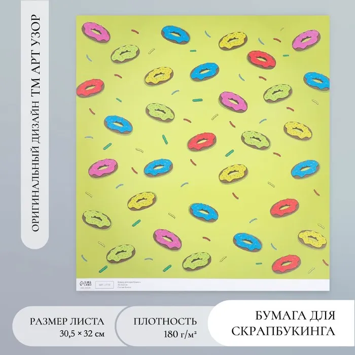 Бумага для скрапбукинга «Пончики», плотность 180 г, 30.5×32 см — Характеристики