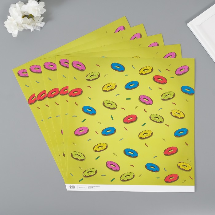 Бумага для скрапбукинга «Пончики», плотность 180 г, набор 5 шт., 30.5×32 см — Характеристики