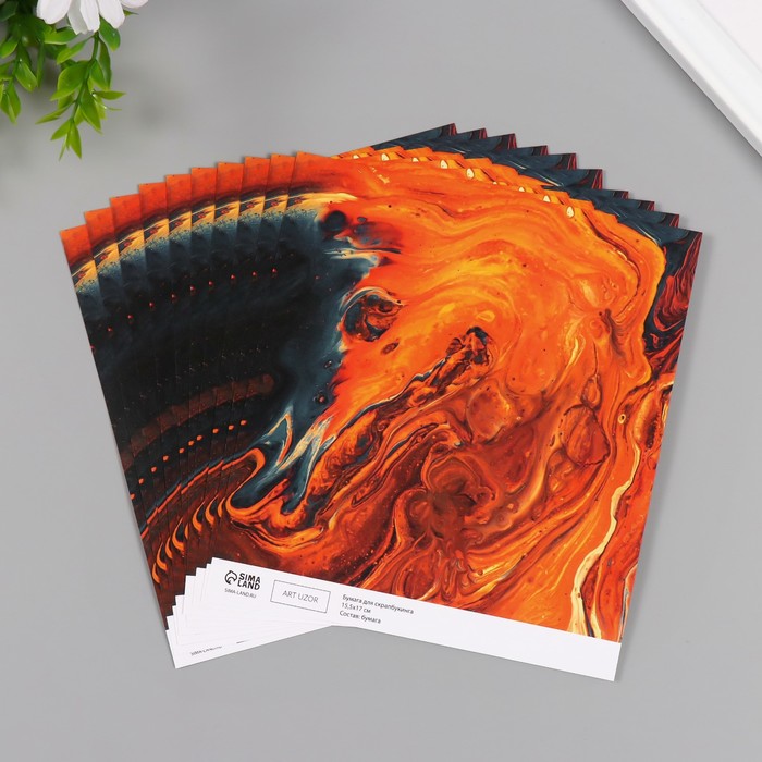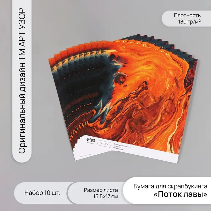 Бумага для скрапбукинга «Поток лавы», плотность 180 г, набор 10 шт., 15.5×17 см — Характеристики