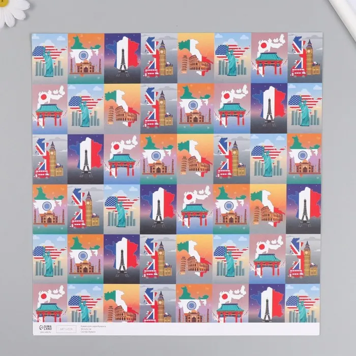 Бумага для скрапбукинга «Путешествия», плотность 180 г, 30.5×32 см — Характеристики