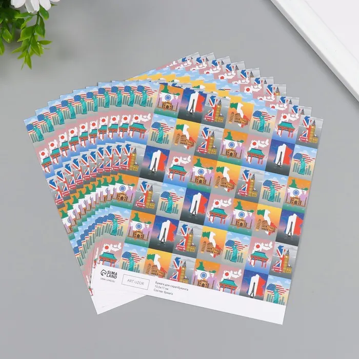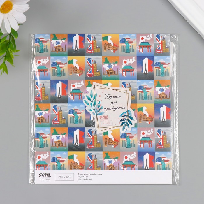 Бумага для скрапбукинга «Путешествия», плотность 180 г, набор 10 шт., 15.5×17 см — Характеристики