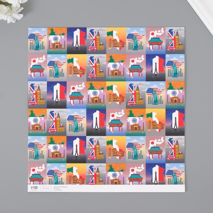 Бумага для скрапбукинга «Путешествия», плотность 180 г, набор 5 шт., 30.5×32 см — Характеристики