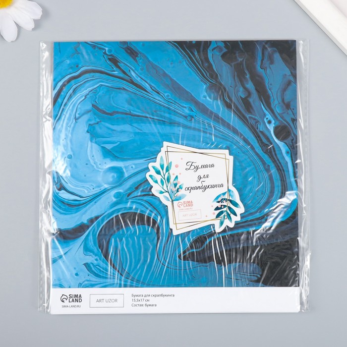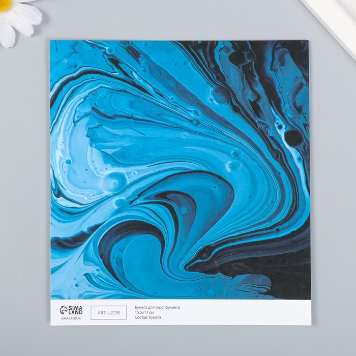 Бумага для скрапбукинга «Разводы голубой краски», плотность 180 г, 15.5×17 см — Характеристики