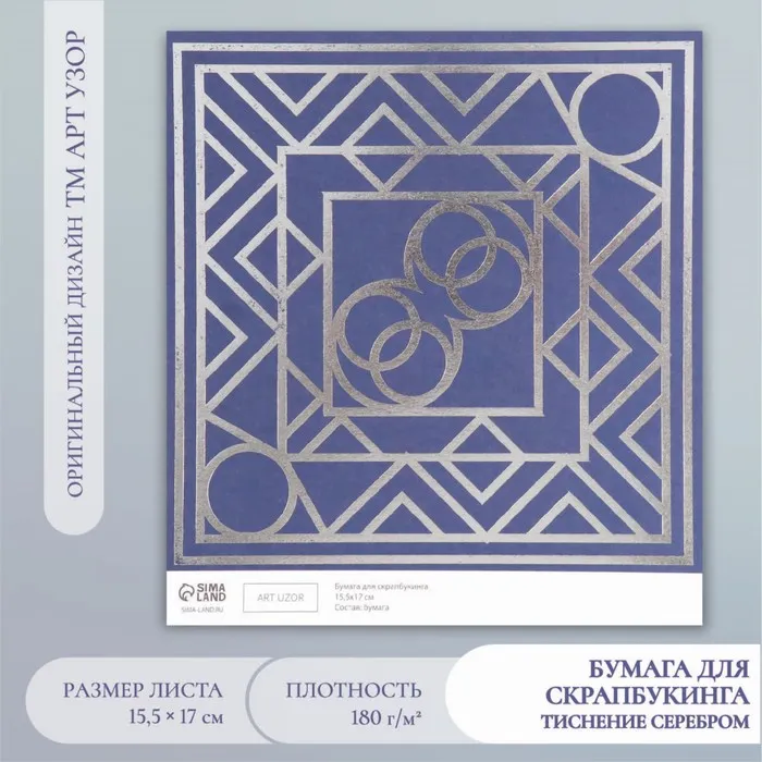 Бумага для скрапбукинга серебро «Эклектика», плотность 180 г, 15.5×17 см — Характеристики