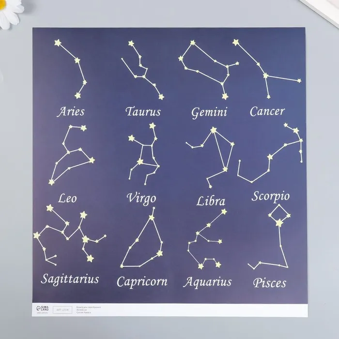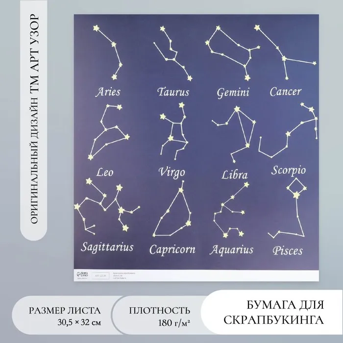 Бумага для скрапбукинга «Созвездия», плотность 180 г, 30.5×32 см — Характеристики