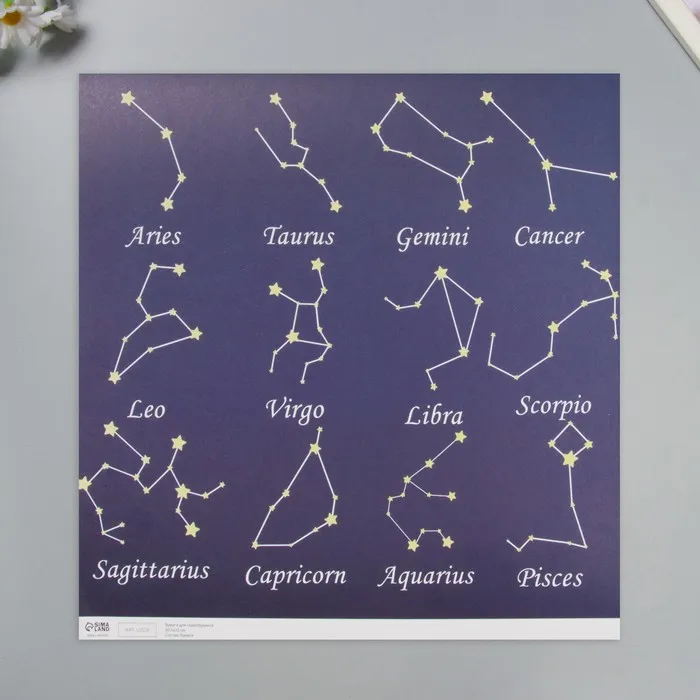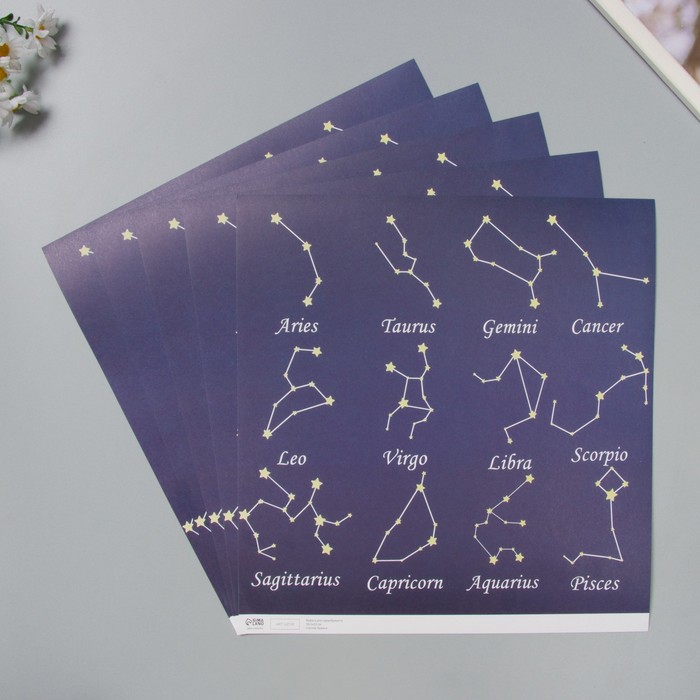 Бумага для скрапбукинга «Созвездия», плотность 180 г, набор 5 шт., 30.5×32 см — Характеристики