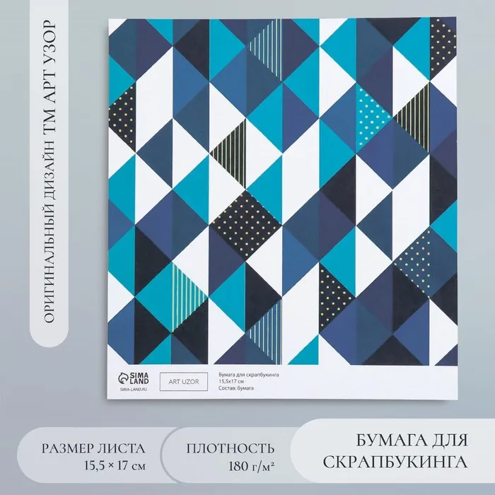 Бумага для скрапбукинга «Строгая геометрия», плотность 180 г, 15.5×17 см — Характеристики