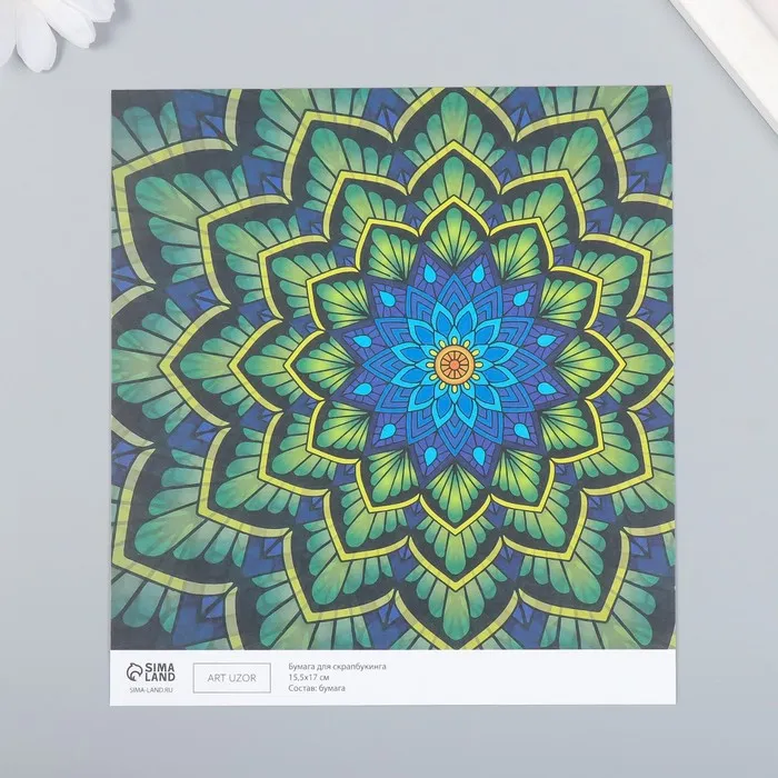 Бумага для скрапбукинга «Цветочная мандала», плотность 180 г, 15.5×17 см — Характеристики