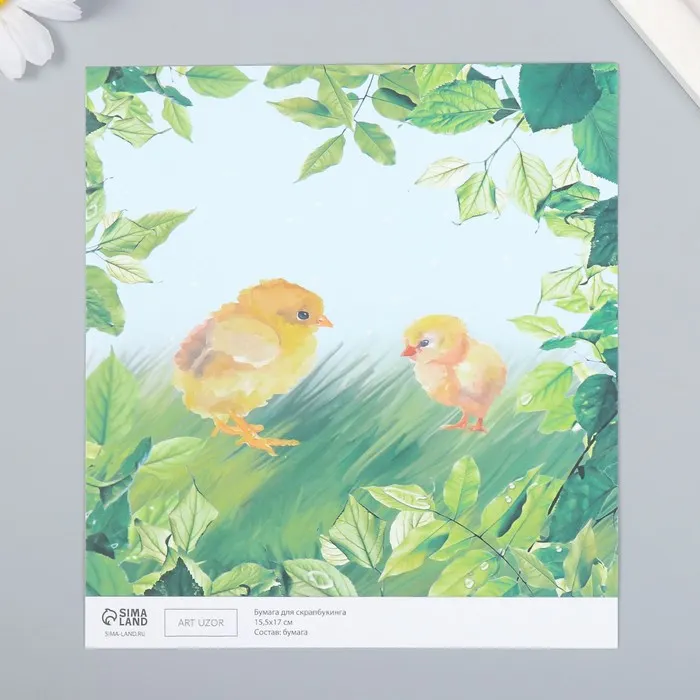 Бумага для скрапбукинга "Цыплята на траве" плотность 180 гр 15,5х17 см — Характеристики