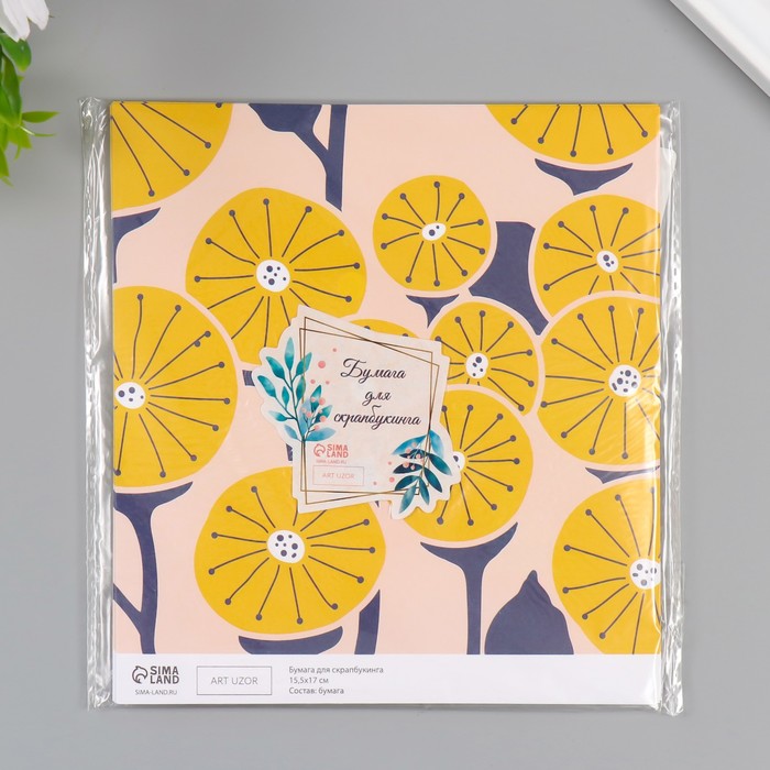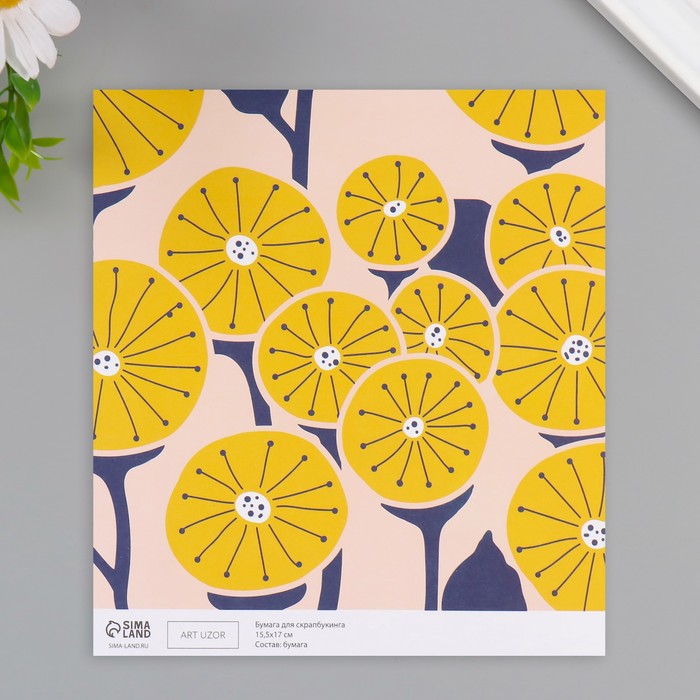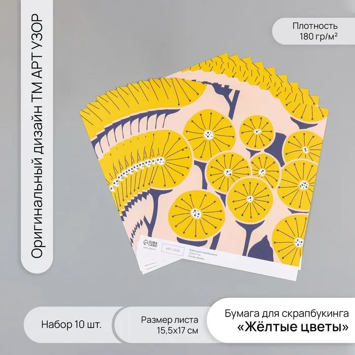 Бумага для скрапбукинга «Жёлтые цветы», плотность 180 г, набор 10 шт., 15.5×17 см — Характеристики