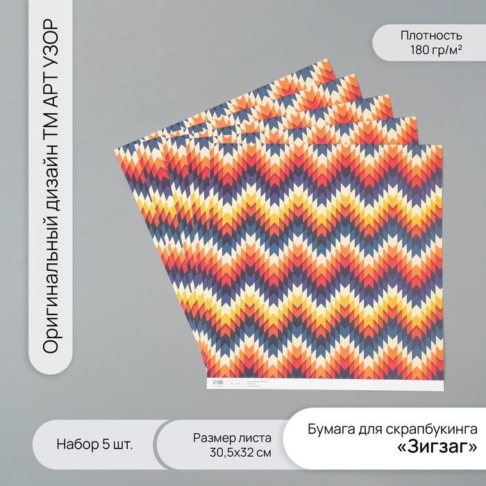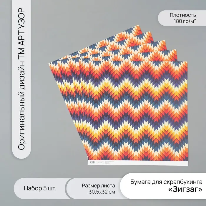 Бумага для скрапбукинга «Зигзаг» плотность 180 г набор 5 шт. 30.5×32 см — Характеристики