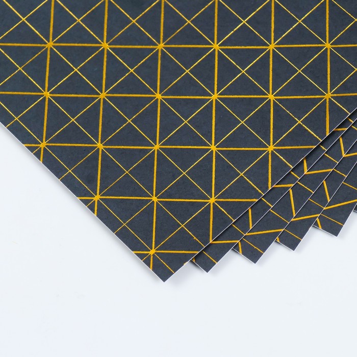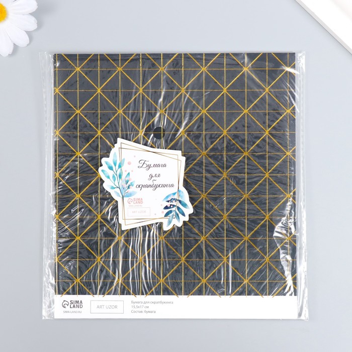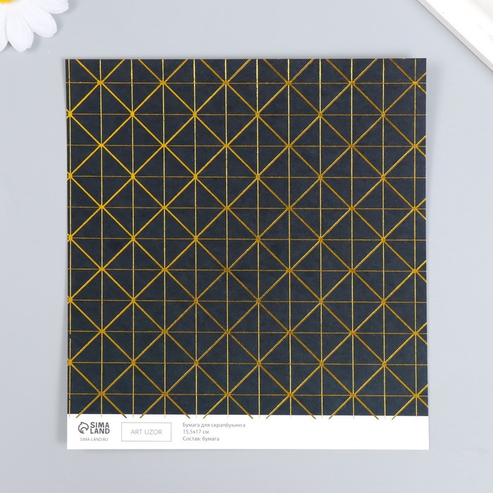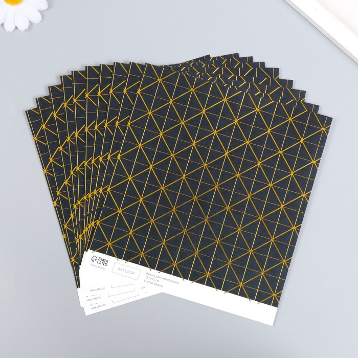 Бумага для скрапбукинга золото "Геометрия на чёрном" плотность 180 гр 15,5х17 см — Характеристики